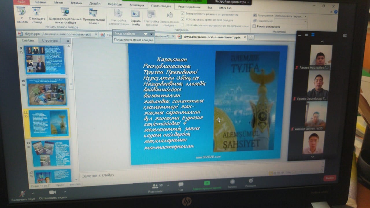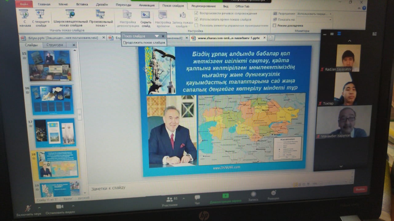 30 қараша «1-желтоқсан-Тұңғыш Президент күні» мерекесінің мәнін ашу, Нұрсұлтан Әбішұлы Назарбаевтың өмір жолы, туып өскен, оқып білім алған, қызмет еткен жерлері туралы мағлұмат беру, Елбасындай Отанын, халқын сүюге, нағыз азамат, шынайы патриот болуға тәрбиелеу, студенттердің бойында Елбасына деген сүйіспеншілік, құрмет сезімін қалыптастыру мақсатында ашық тәрбиелік шара өткізілді.