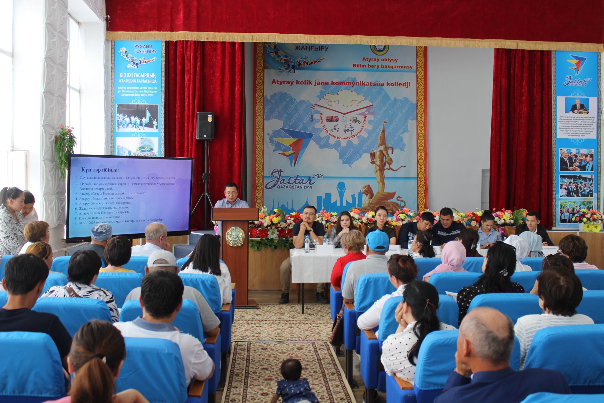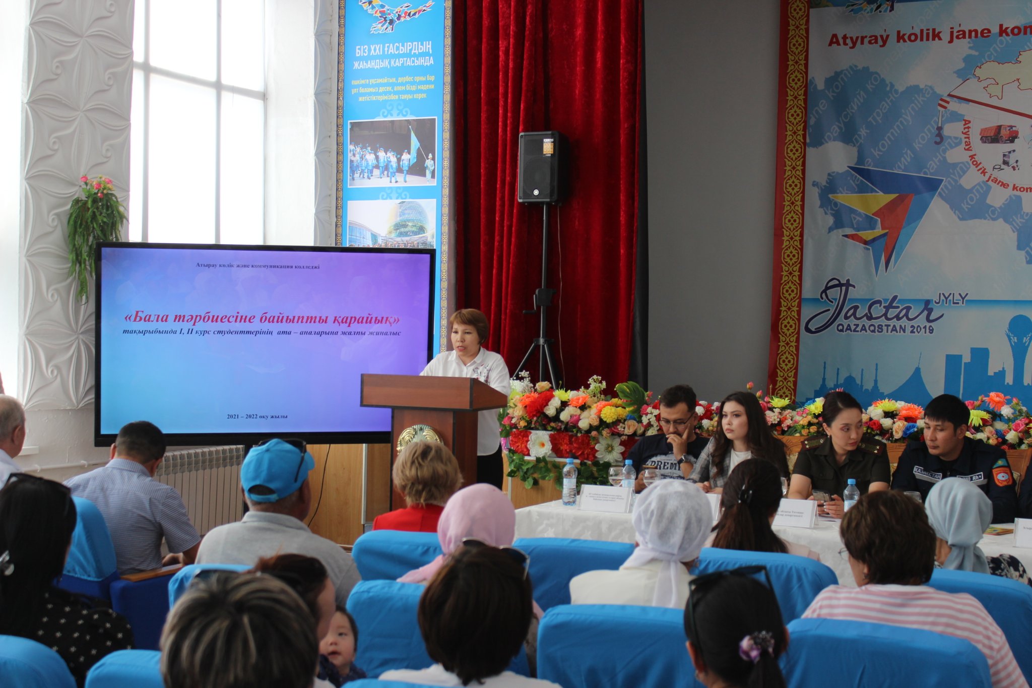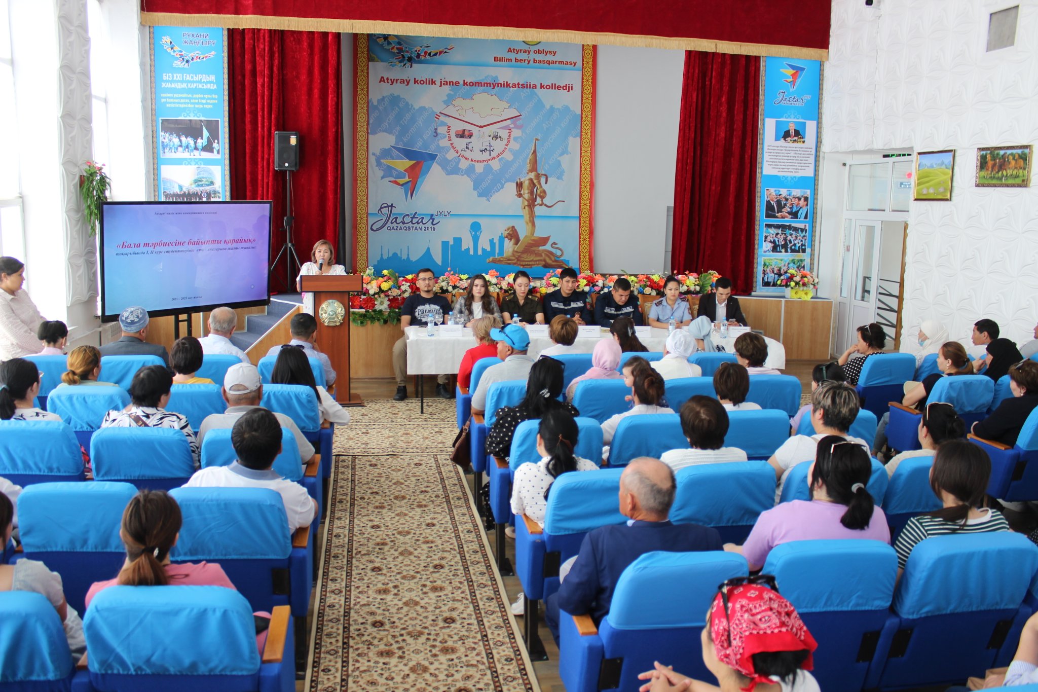 01.06.2022 ж Оқу жылының аяқталуы, жаңа оқу жылына дайындық. Жазғы демалыс мезгіліндегі жастардың бос уақытын қызықты әрі тиімді өткізуі, қауіпсіздік ережелерін қатаң сақтау , түрлі діни ағымдардан бойын аулақ ұстау , әлеуметтік желілерді сақтықпен қолдану, жасөспірімдерді келеңсіз жағдайлардан қорғау, түнгі мезгілсіз уақытта көшеде жүрмеу, құқық бұзушылықтың алдын алу, өрттен судан сақ болу т.б сақтық шаралары туралы түсінік жұмыстарын жүргізу мақсатында «Бала тәрбиесіне байыпты қарайық» тақырыбында І, ІІ курс студенттерінің ата – аналарына төмендегі мамандардың қатысуымен жалпы ата – аналар жиналысы өткізілді.