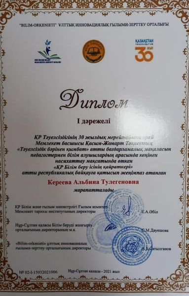 Кәсіби пән оқытушысы Кереева Альбина Төлегенқызы 2021 жылдың 15-ші наурызында Нұр-Сұлтан каласында өткен «ҚР Білім беру ісінің қайраткері» республикалық байқауында жеңіске жетіп, «ҚР Білім беру ісінің қайраткері» медалімен және І дәрежелі дипломмен марапатталды.